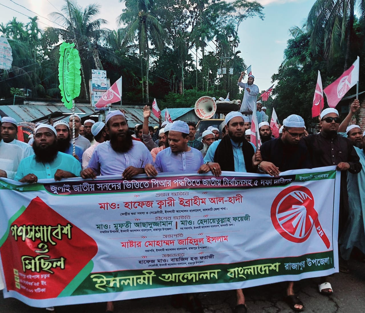 ঝালকাঠির রাজাপুরে ইসলামী আন্দোলনের বিক্ষোভ মিছিল ও গণসমাবেশ