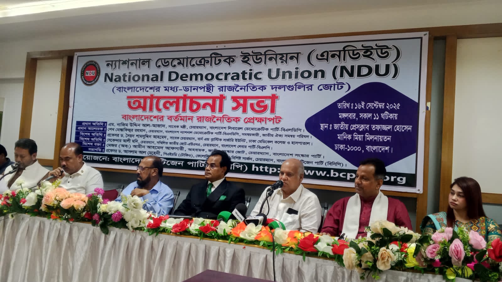খাদের কিনারে গণতন্ত্র। দেশের বৃহত্তর বর্তমান তিনটি রাজনৈতিক দলের মধ্যে বিএনপি, জামায়াত ইসলাম ও এনসিপির মধ্যে সংস্কার করেই জাতীয় নির্বাচন নিয়ে তৈরি হয়েছে ব্যাপক ধুম্রজাল। এই কিনার থেকে গণতন্ত্র উত্তরনে সকল অনিবন্ধিত রাজনৈতিক দলকে একিভূত হতে হবে। বর্তমান সরকার গত শনিবার ১৩ই সেপ্টেম্বর ২০২৫ইং তারিখ ৩০টি রাজনৈতিক দল নিয়ে বৈঠক করেছেন। কিন্তু সেখানে আগামী ফেব্রুয়ারীতে জাতীয় নির্বাচন এখন সম্ভব নয় বলে অনেক দল তাদের অভিমত ব্যক্ত করেছেন। এখান থেকে উত্তরনে আমাদের করনীয় অর্থাৎ প্রায় ১০০টি অনিবন্ধিত দল, বেশ কয়েকটি অনিবন্ধিত জোট এবং তাদের সাথে জড়িত সকল আপামর জনগণকে সাথে নিয়ে একটি প্লাটফর্মে এসে এক জনকে ইমাম হিসাবে মানতে হবে। তিনি আর কেউ নন, তিনি হলেন আজকের অনুষ্ঠানের প্রধান অতিথি সাবেক মন্ত্রী, বাংলাদেশ লিবারেল ডেমোক্রেটিক পার্টি-বিএলডিপির সফল চেয়ারম্যান ও জাতীয় ঐক্য সমন্বয় পরিষদের প্রধান সমন্বয়কারী- বয়সের ভারে নুজ্য হলেও এখনও তিনি তরুন, প্রাজ্ঞ ও অভিজ্ঞ সম্পন্ন ব্যক্তিত্ব, মানব কল্যাণের পথ প্রদর্শক, আমাদের জাতীয় অহংকার এবং গৌরব এম. নাজিম উদ্দিন আল-আজাদ।