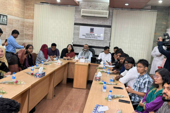 এতে নবনির্বাচিত ভিপি সাদিক কায়েম, সাধারণ সম্পাদক (জিএস) এস এম ফরহাদ, সহ-সাধারণ সম্পাদক (এজিএস) মহিউদ্দীন খানসহ কার্যনির্বাহী পরিষদের অন্যান্য সদস্যরা উপস্থিত ছিলেন। বৈঠকের সভাপতিত্ব করেন বিশ্ববিদ্যালয়ের অধ্যাপক নিয়াজ আহমেদ খান।