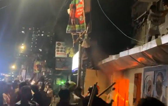 এসময় পুলিশ ঘটনাস্থলে পৌঁছালে পরিস্থিতি আরও উত্তপ্ত হয়ে ওঠে। পরিস্থিতি নিয়ন্ত্রণে আনতে আইনশৃঙ্খলা বাহিনী জলকামান থেকে পানি ছিটায় এবং সাউন্ড গ্রেনেড ব্যবহার করে। তবে এতে জনতা আরও ক্ষিপ্ত হয়ে ওঠে। পরে ধীরে ধীরে বিক্ষোভকারীদের সরে যেতে বাধ্য করা হয় এবং আগুন নেভাতে উদ্যোগ নেয় পুলিশ।
