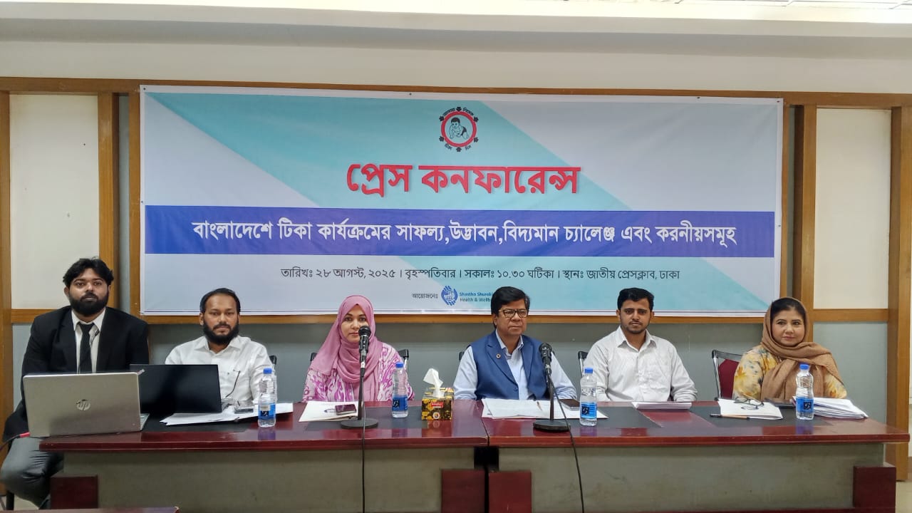 অদ্য ২৮ আগস্ট, ২০২৫, বৃহস্পতিবার সকাল ১০.৩০ ঘটিকায় জাতীয় প্রেসক্লাবের তফাজ্জল হোসেন মানিক মিয়া হলরুমে স্বাস্থ্য সুরক্ষা ফাউন্ডেশনের আয়োজনে "বাংলাদেশে টিকা কার্যক্রমের সাফল্য, বিদ্যমান চ্যালেঞ্জ এবং করণীয়" শীর্ষক একটি প্রেস কনফারেন্স অনুষ্ঠিত হয়। স্বাস্থ্য সুরক্ষা ফাউন্ডেশনের উদ্যোগে এবং 'ইউনিসেফ বাংলাদেশ ও স্বাস্থ্য সুরক্ষা ফাউন্ডেশন'-এর যৌথ অ্যাডভোকেসি প্রোজেক্ট এর আওতায় সরকারের সম্প্রসারিত টিকাদান কর্মসূচী (EPI) এর সহায়তায় দেশের বিভিন্ন জেলায় টিকাদান কার্যক্রমের বর্তমান অবস্থা, প্রতিবন্ধকতা এবং করণীয় বিষয়ে এই প্রোগ্রাম আয়োজন করা হয়।